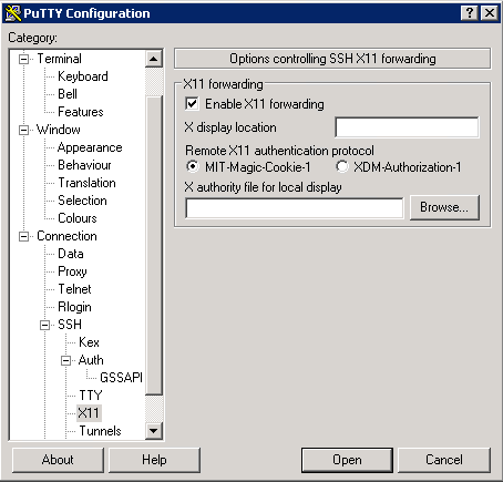 - The authentication protocol “MIT-Magic-Cookie-1” must be chose.
